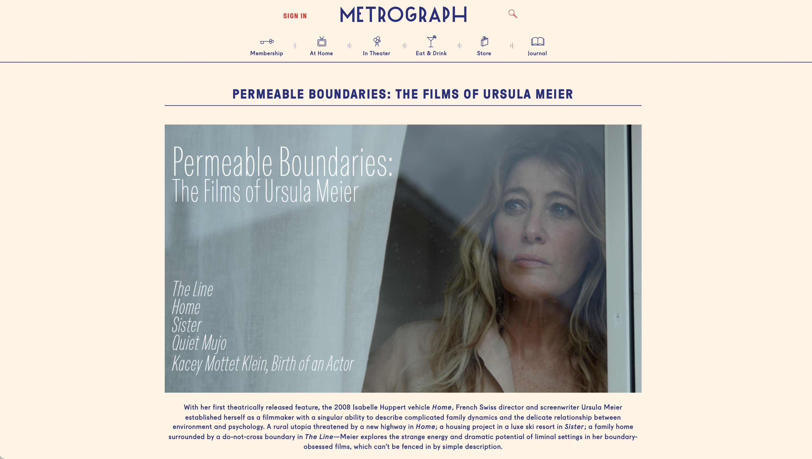 The Line will have its U.S. premiere at Metrograph on March 31, marking its U.S. release. On this occasion, Metrograph is also hosting a retrospective dedicated to Ursula Meier, titled Permeable Boundaries: The Films of Ursula Meier.